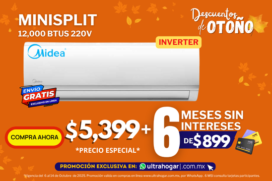 Aire Acondicionado, Minisplit Inverter Midea Mod: MAS12C2ECS 12,000 Btu
