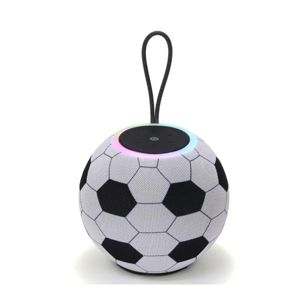 Bocina Portátil balón TWS con luz LED y reproductor USB. TWS para conectar dos bocinas entre si de forma inalámbrica. Bluetooth, Reproductor de Tarjeta Micro SD y Radio FM. Luz LED decorativa que cambia de color al ritmo de la música. Entrada Auxiliar. Micrófono para manos libres. Batería recargable.