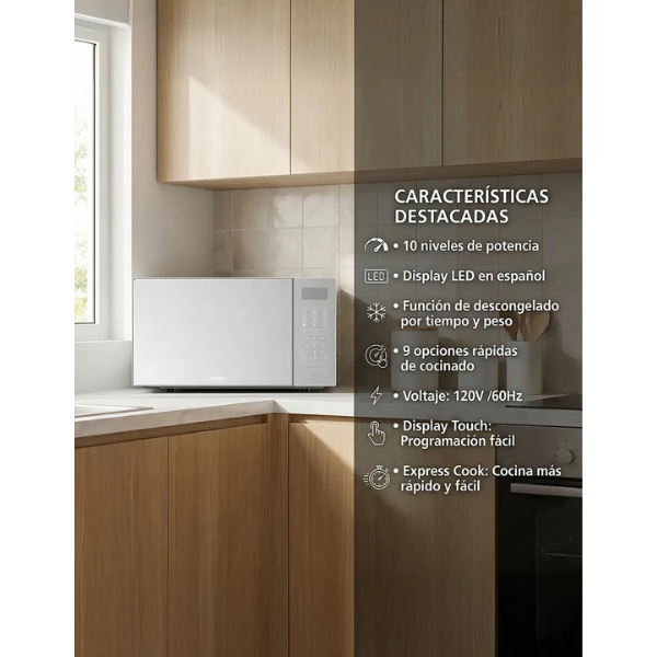 El microondas Mabe es una opción práctica y funcional para el uso diario en el hogar. Cuenta con 10 niveles de potencia, lo que permite ajustar la intensidad de cocción según cada alimento y lograr resultados óptimos en distintos platillos.